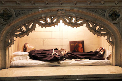 | Reliquaries containing (L) Padre Pio's glove and (R) sock |
